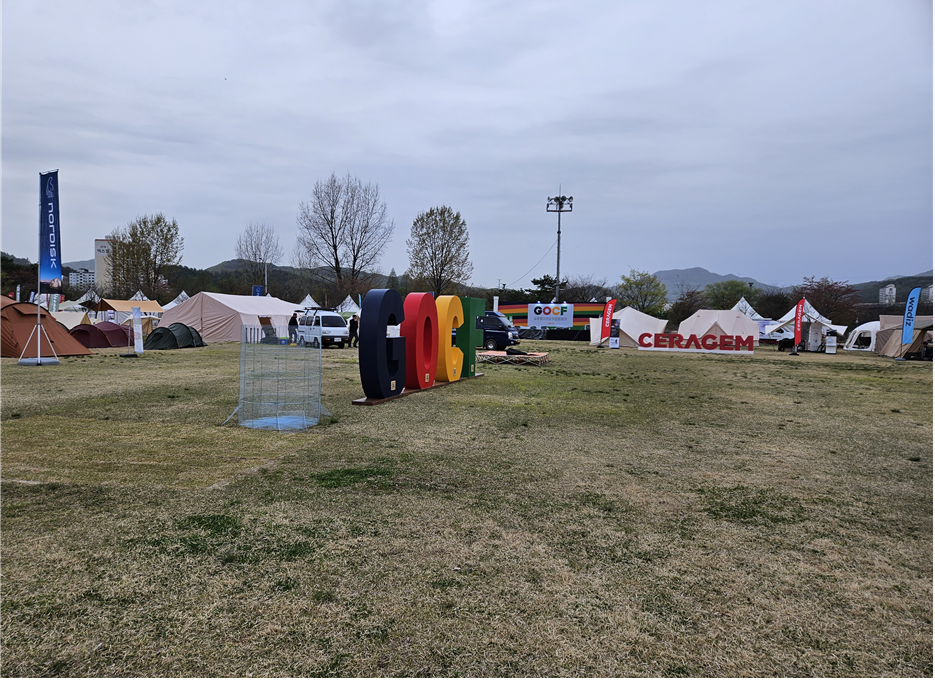 아웃도어 관련 행사로 보이는데 이른 아침이라 구경은 할 수 없고 낯에 오면 구경할게 많을 거 같다.