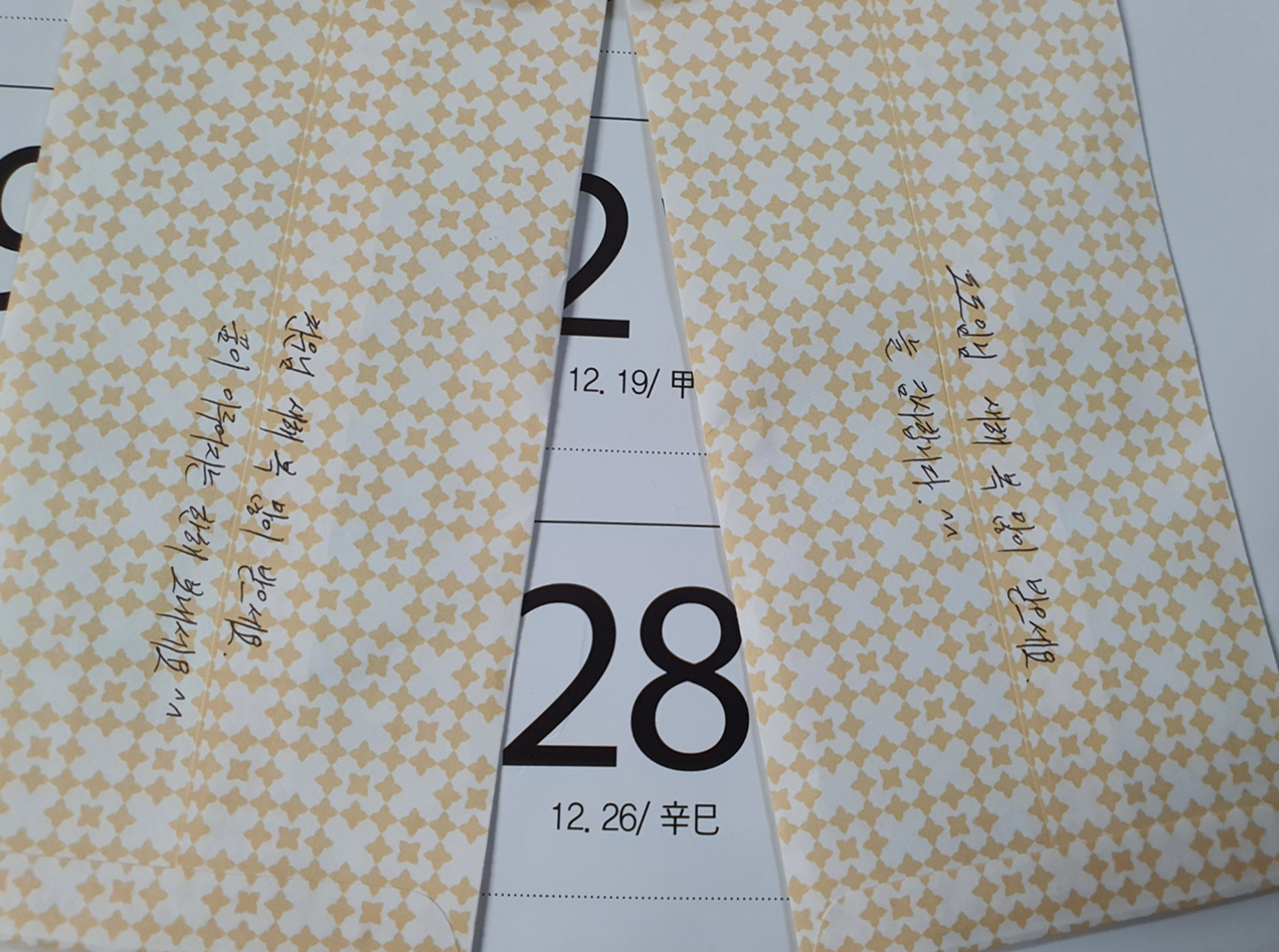 찾아온 손님과 이야기를 나누다 보니 시간도 아낄 겸 해서 점심을 바로 앞집에 가서 포장으로 해와 잘 먹고 좋은 시간 보내며 한참 대화를 하고 헤어지는데 봉투를 두 개 건넵니다.