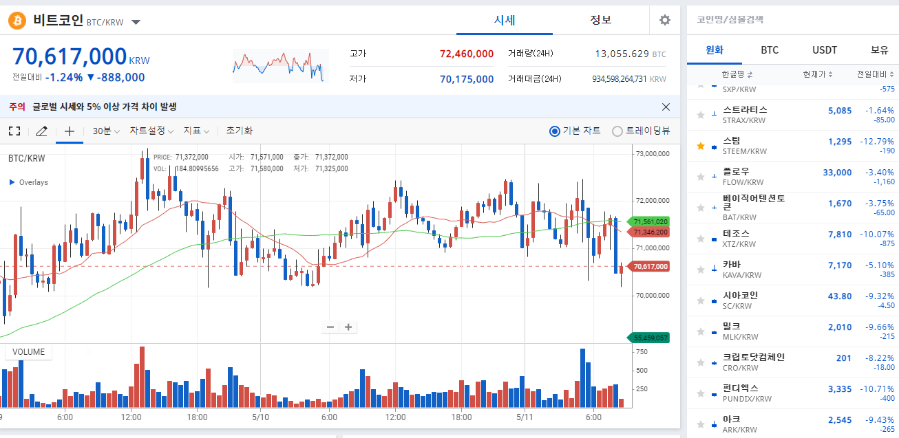 잠에서 깨자마자 시장이 어떤가 확인을 해봤다.