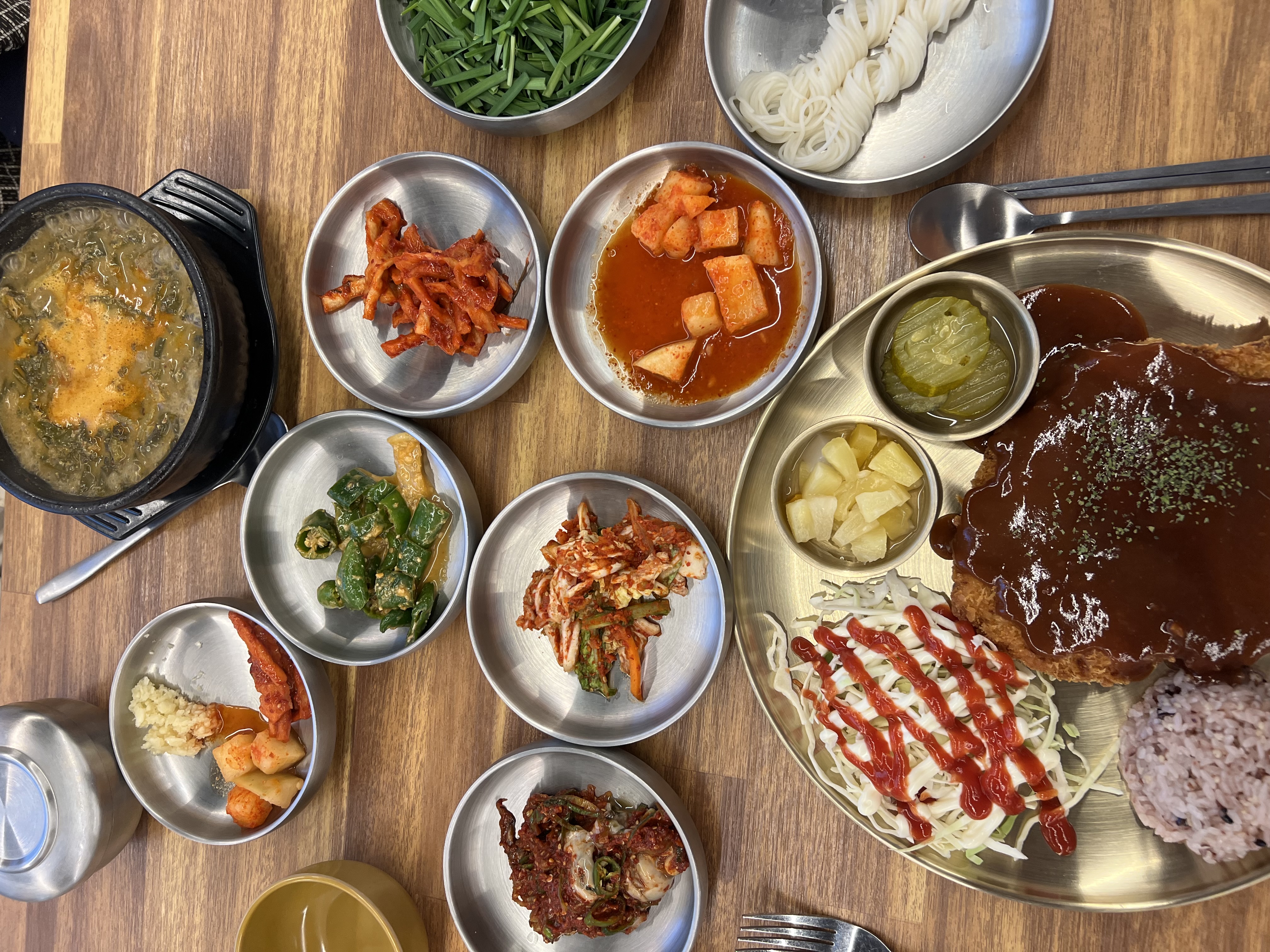 돈까스 접시가 플라스틱 접시가 아니네요. 칼로 자르기가 좀 이상할듯..