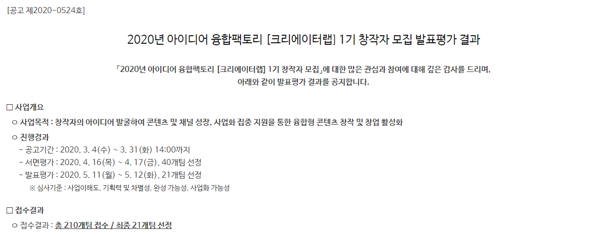 [콘텐츠 진흥원 #0] 크리에이터랩 1기 창작자 최종 합격~!!