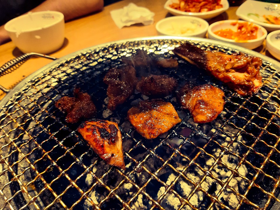 광안리를 걸어가며 커피를 마시며 하지 못했던 이야기를 마저했다. 그리고 한참을 걸어서 광안리에 도착하니 점심 때 먹은 국밥은 사라졌다. 광안리에서 먹을만한 간식을 찾았다. 하지만 마땅히 생각하지 못한 찰라에 핫도그가 생각났다. 일본에서 한국식 핫도그가 하나에 500엔정도 해서 자주 못먹는다고 한 것이 기억이 나서 핫도그 가게를 찾아헤메었다. 우여곡절 끝에 찾은 가게는 배달중이라는 문구와 굳게 닫혀있었다. 우리는 언제나 머피의 법칙이 함께 하는 것 같다. 결국 간식은 못 먹고 앞에 있는 코인노래방에 들어가 노래 한곡씩 부르고 나왔다. 부르고 나오니 간식은 애매하고 저녁식사는 좀 이른 시간이었지만, 돼지갈비 무한리필인 명륜진사갈비로 갔다. 갈비는 생각보다 부드러웠고 무한리필치고 고기가 정말 괜찮았다. 그리고 양념은 많이 먹으면 특유의 느끼함이 있는데, 느끼함도 없이 정말 맛있게 먹었다. 남자 셋이서 3인분씩 먹고 이걸 저것 가져다 먹었으니 정말 잘 먹었다.