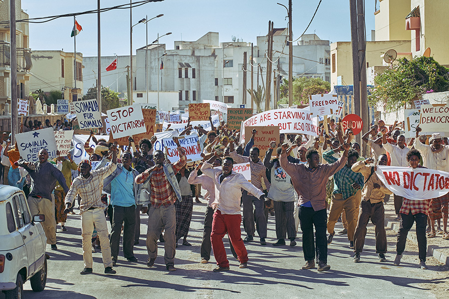 UN가입에 필요한 아프리카 50여 국가들의 지지표를 받기 위해 모가디슈로 떠난 대한민국과 북한 외교관들이 서로 경쟁하며 외교 총력전을 펼치던 중, 1991년 갑작스런 독재정권 정부군과 시민군 사이의 내전이 반발하고 결국 전쟁을 방불케하는 폭력과 전투가 벌어져 그 총격전 속에서 북한과 동반 탈출한다는 실화에 기반한 스토리.
