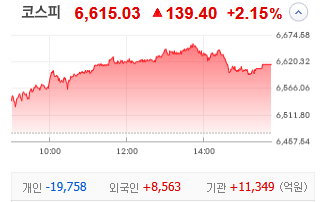 코스피 지수는 6,615.03 이며,