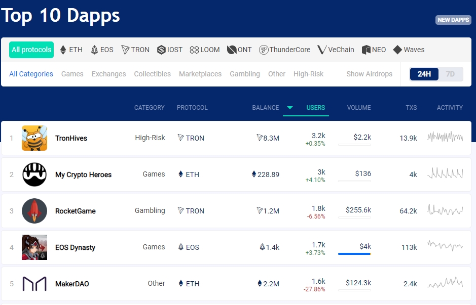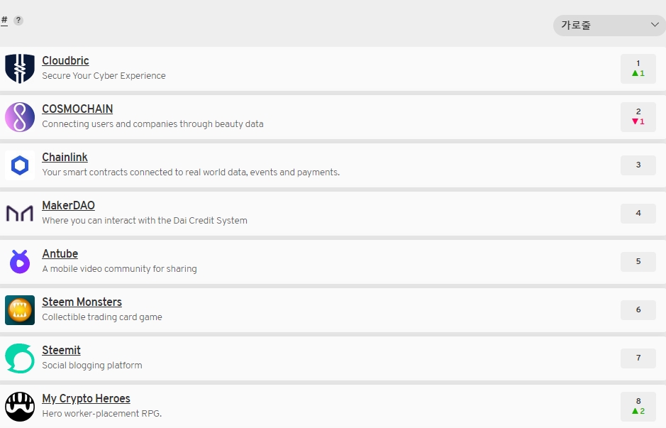 [출처: https://www.stateofthedapps.com/ko/rankings]