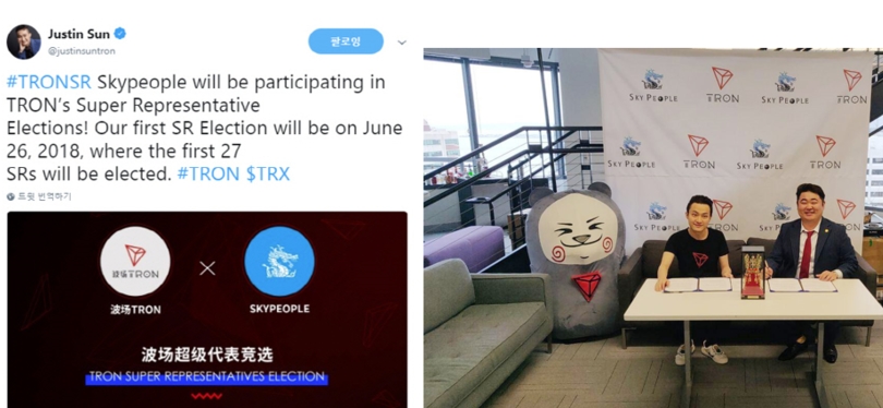 스카이피플은 코인마켓캡 기준 시총 1.27조원인 트론(TRON)의 슈퍼대표(SR: Super Representative)로서, 유일한 한국 대표 마스터노드로 활동하고 있습니다.
