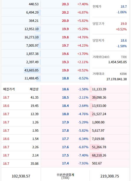 변경후 트론(TRX)호가창