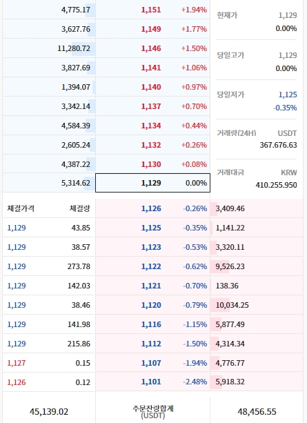 변경후 USDT 호가창