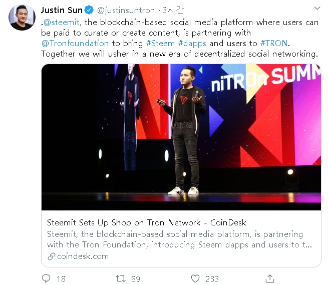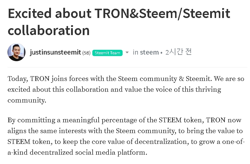 TRON이 STEEMIT 인수를 우회적으로 표현한 이유/ 벌써 보여지는 가시적인 합병효과