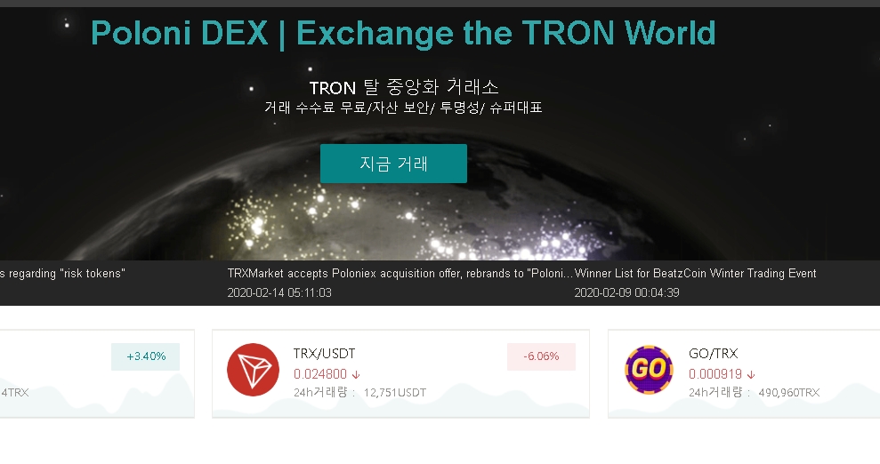 트론개인지갑에 있는 코인들은 현재 폴로닉스 DEX거래소에서 수수료없이 거래가 지원됩니다.
