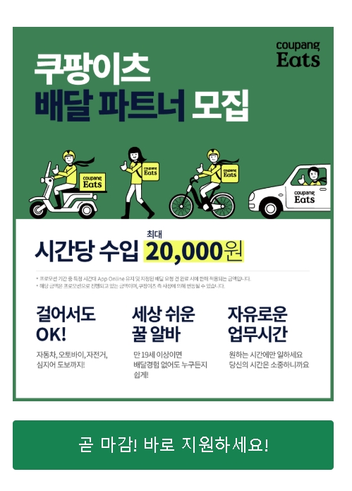 쿠팡이츠 배달알바 신청 <--여기를 클릭하시면 신청링크