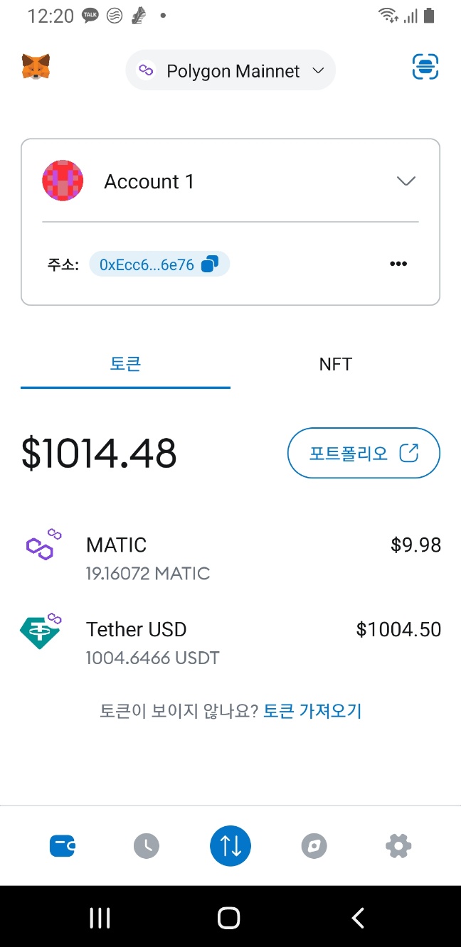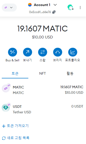 폰 메타마스크 지에는 usdt 가 보이는데, 크롬에서는 매틱만 보이고 usdt 는 안 보이네요.