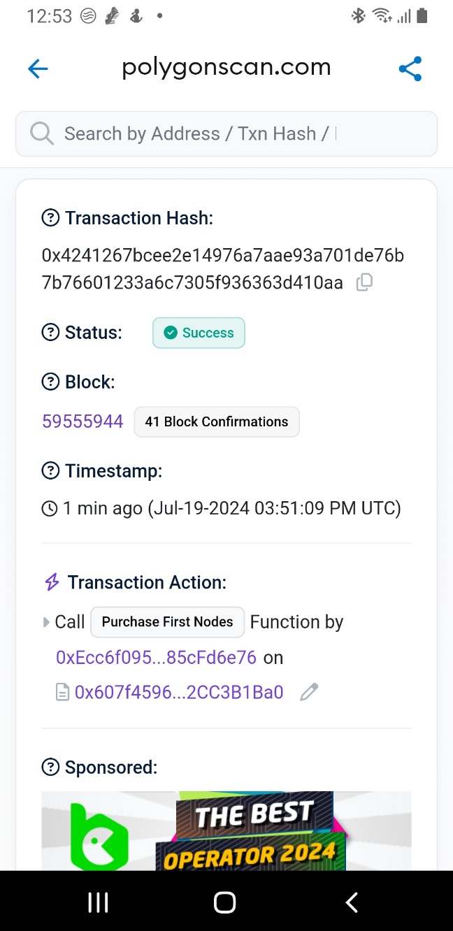 https://polygonscan.com/tx/0x943ba08477ed6d1f8e23b6c9e9b5e61efa84134762d83973de89bbdaf8259877