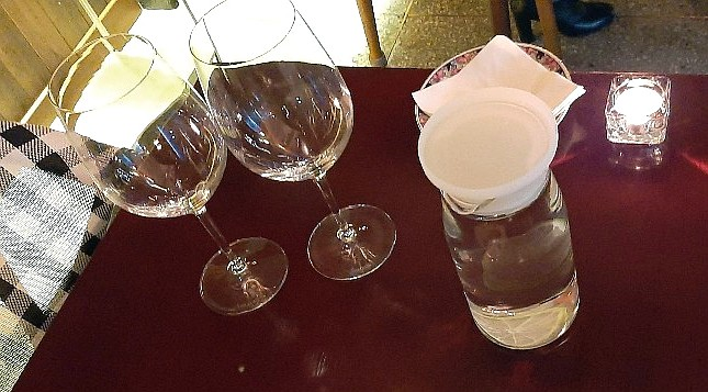 테이블에는 간단한 그릇과 컵, 숟가락과 포크가