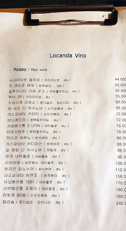 그리고 마지막 장에는 수많은 와인 종류가 있었는데