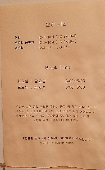 기다리면서 주의사항과 함께 운영시간, 브레이크 타임까지