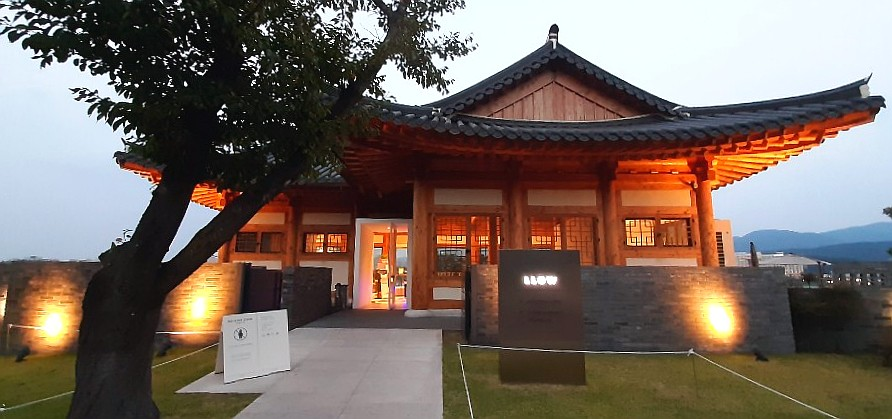 그리고 불이 켜진 기와지붕 모습이