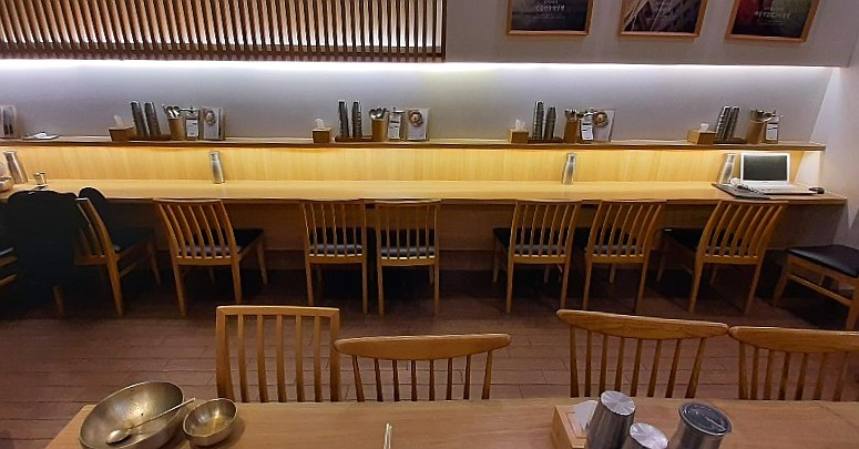 벽과 붙어있는 바 테이블과
