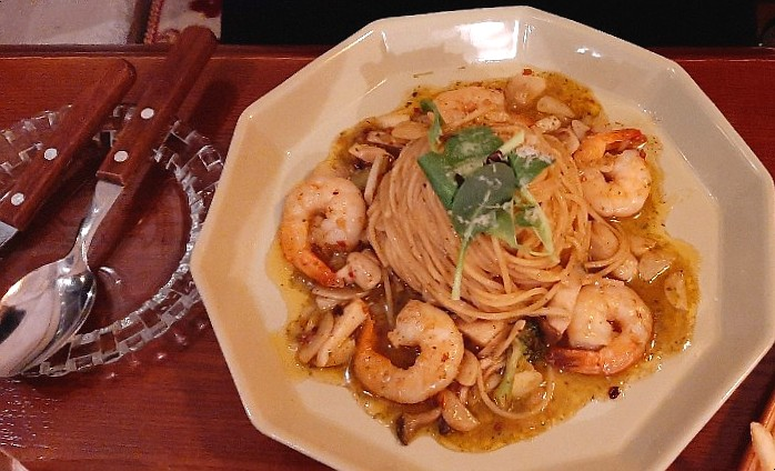 감바스 오일 파스타에요~!