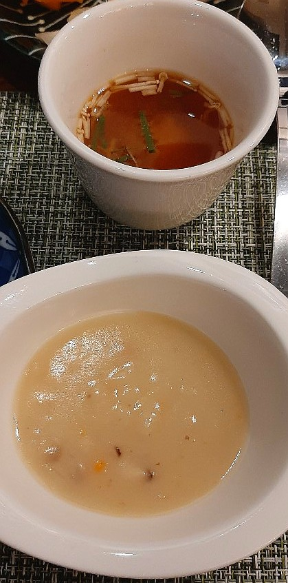 수프와 우동국물이 나왔어요~!