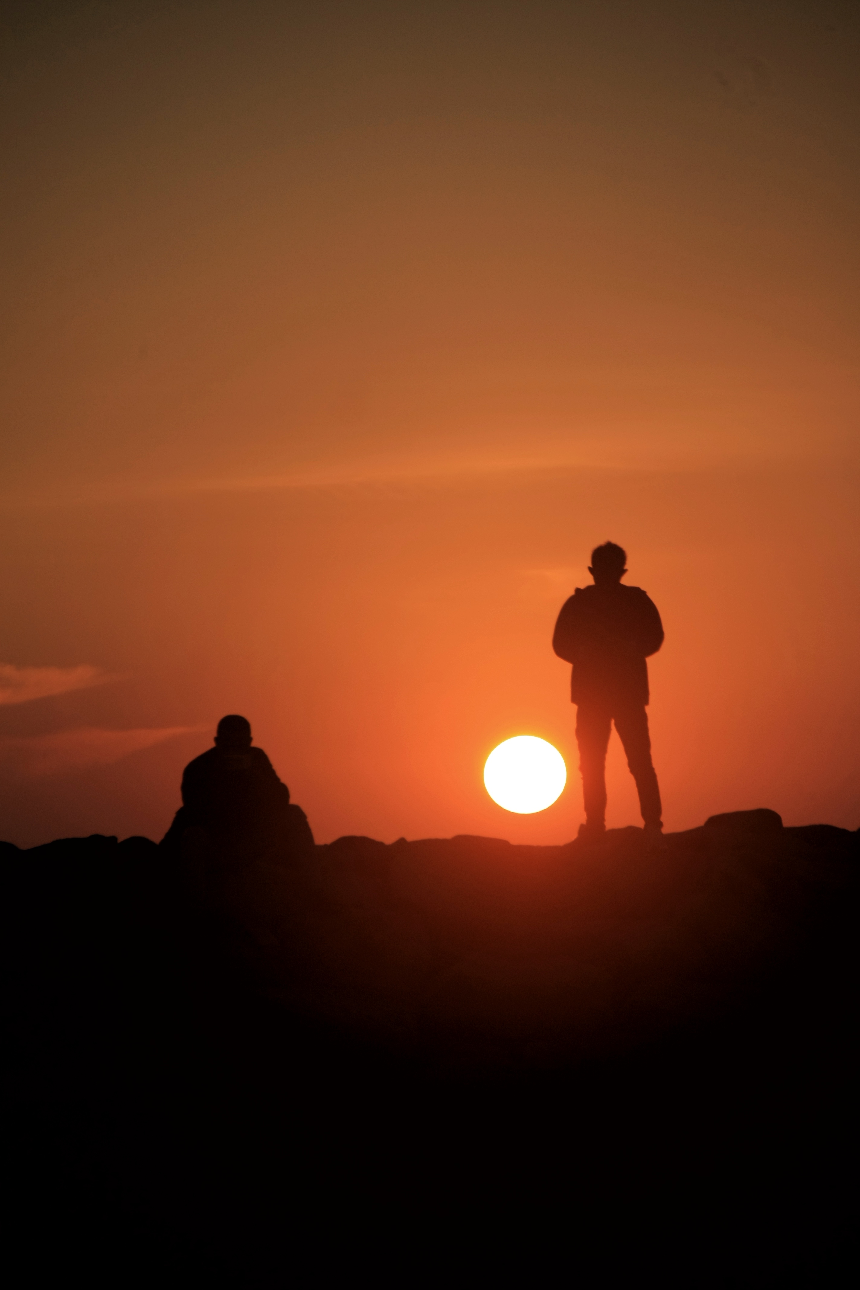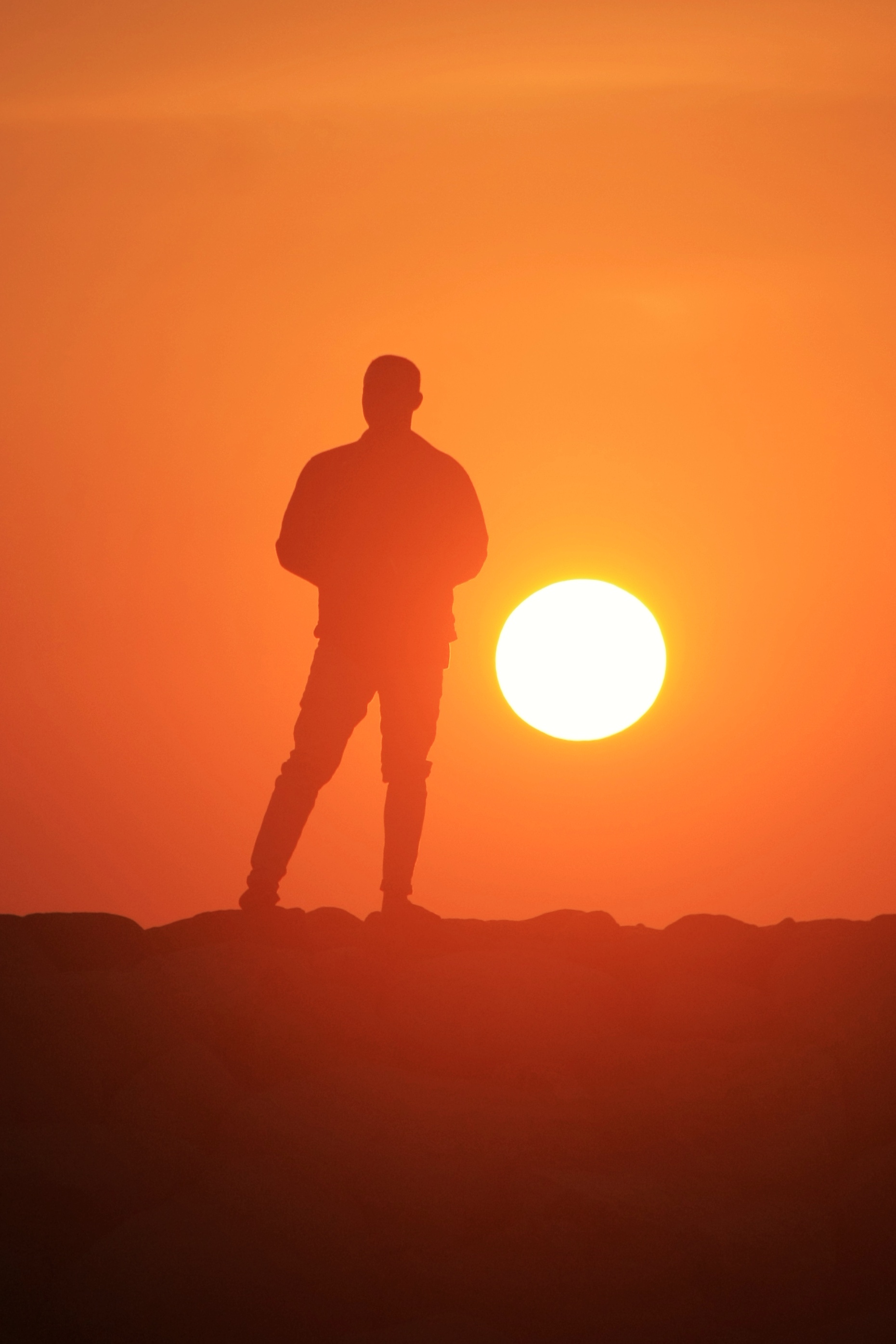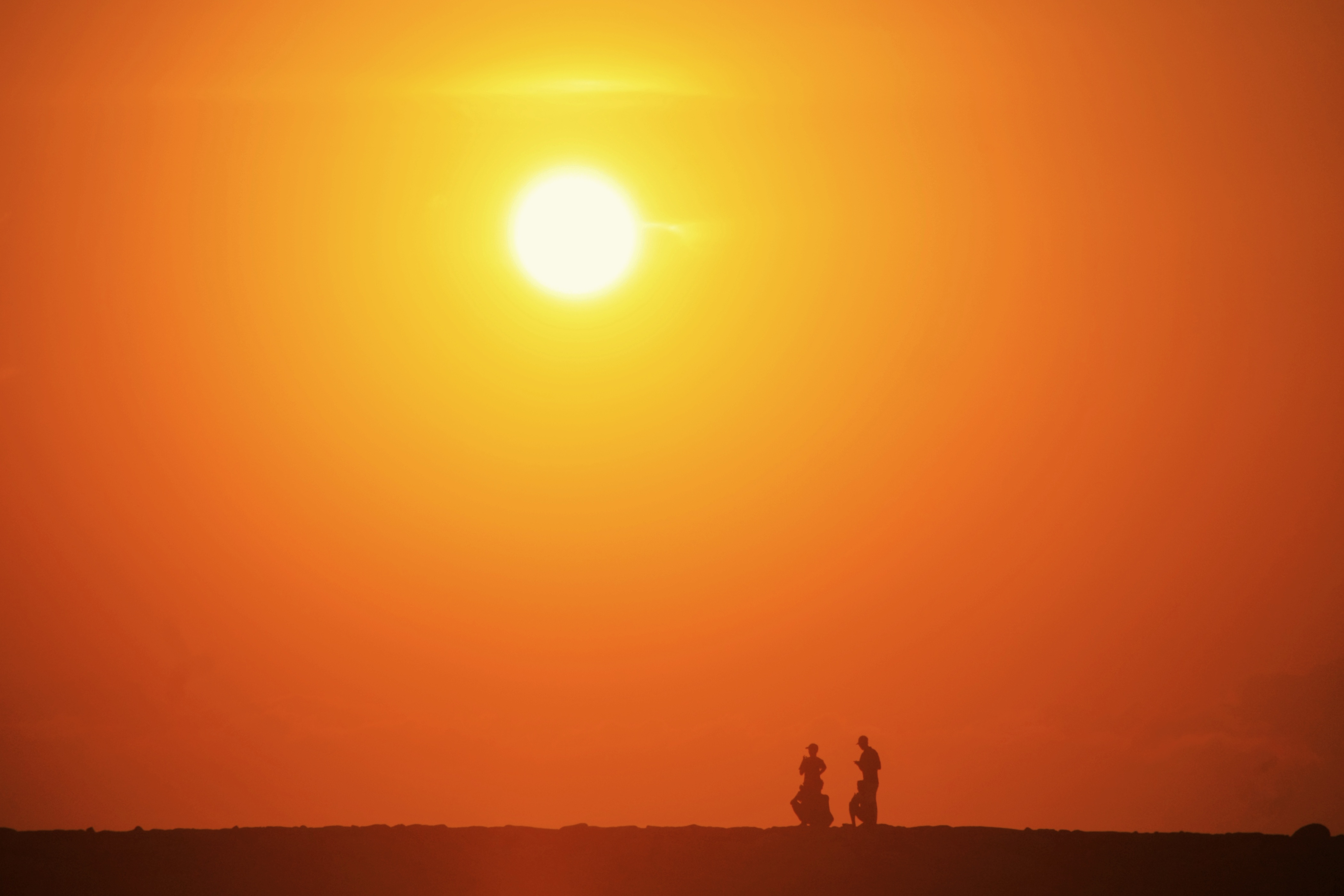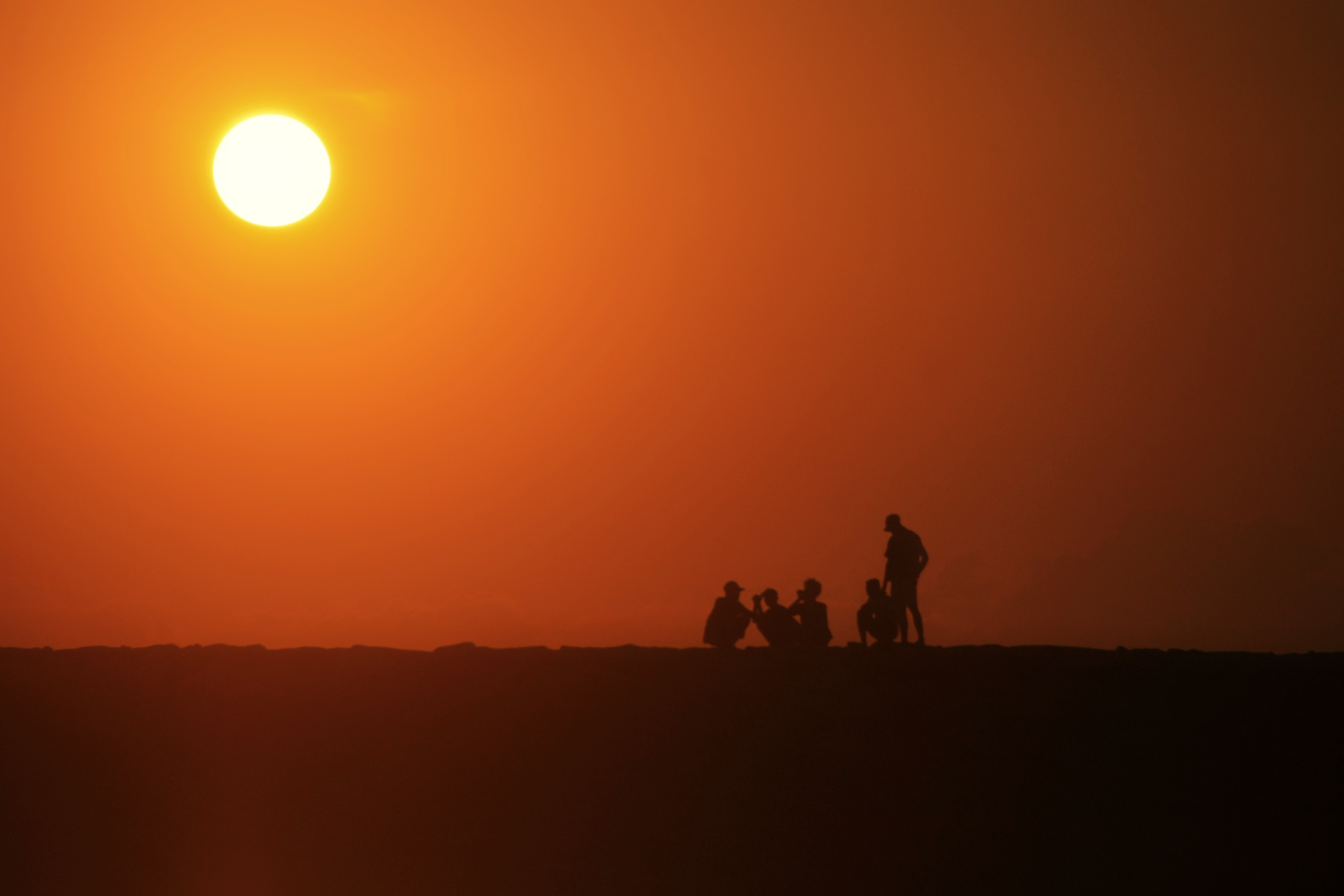 Beautiful view at sunset at the west end of Aceh with a round orange sun.