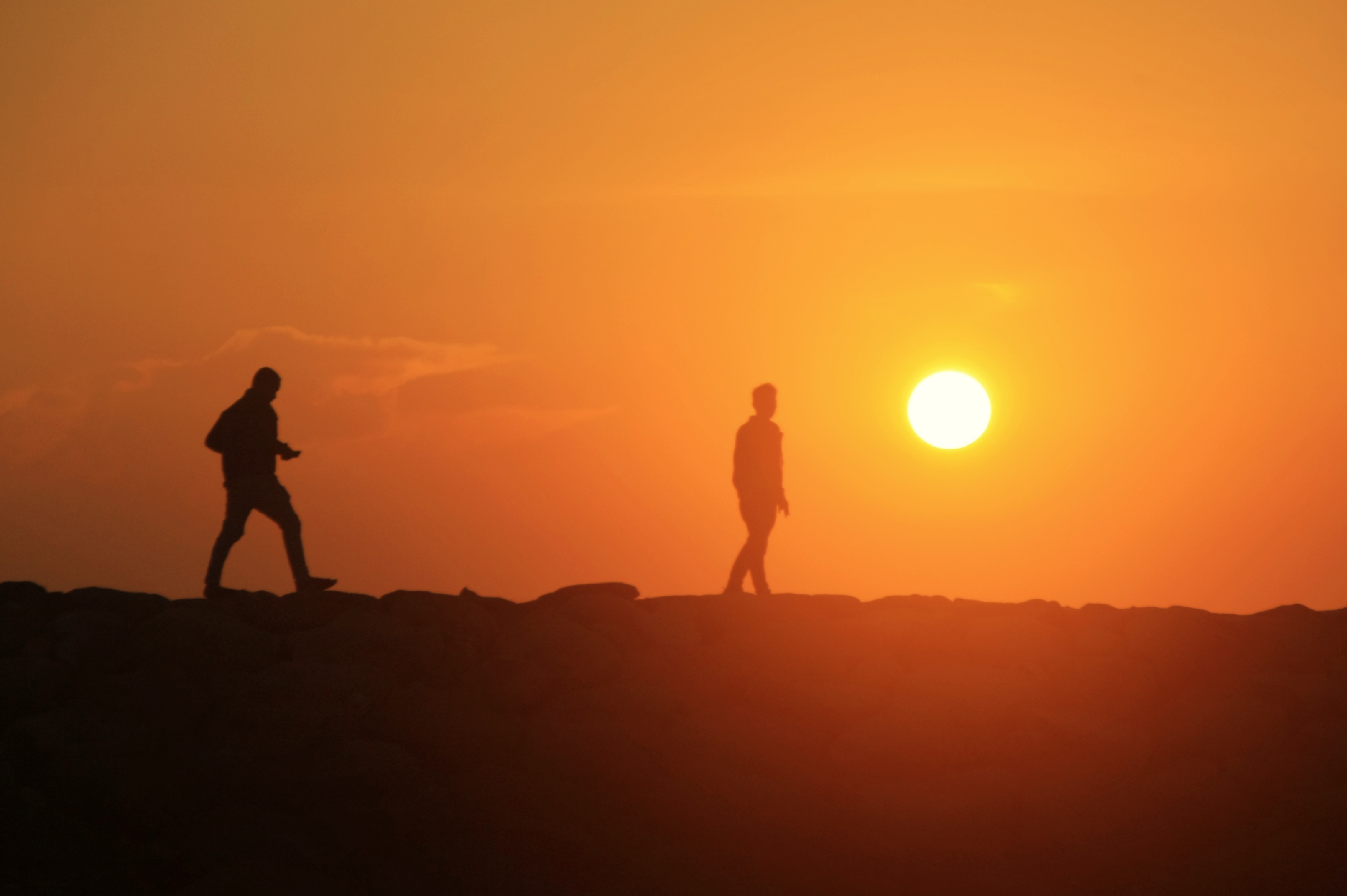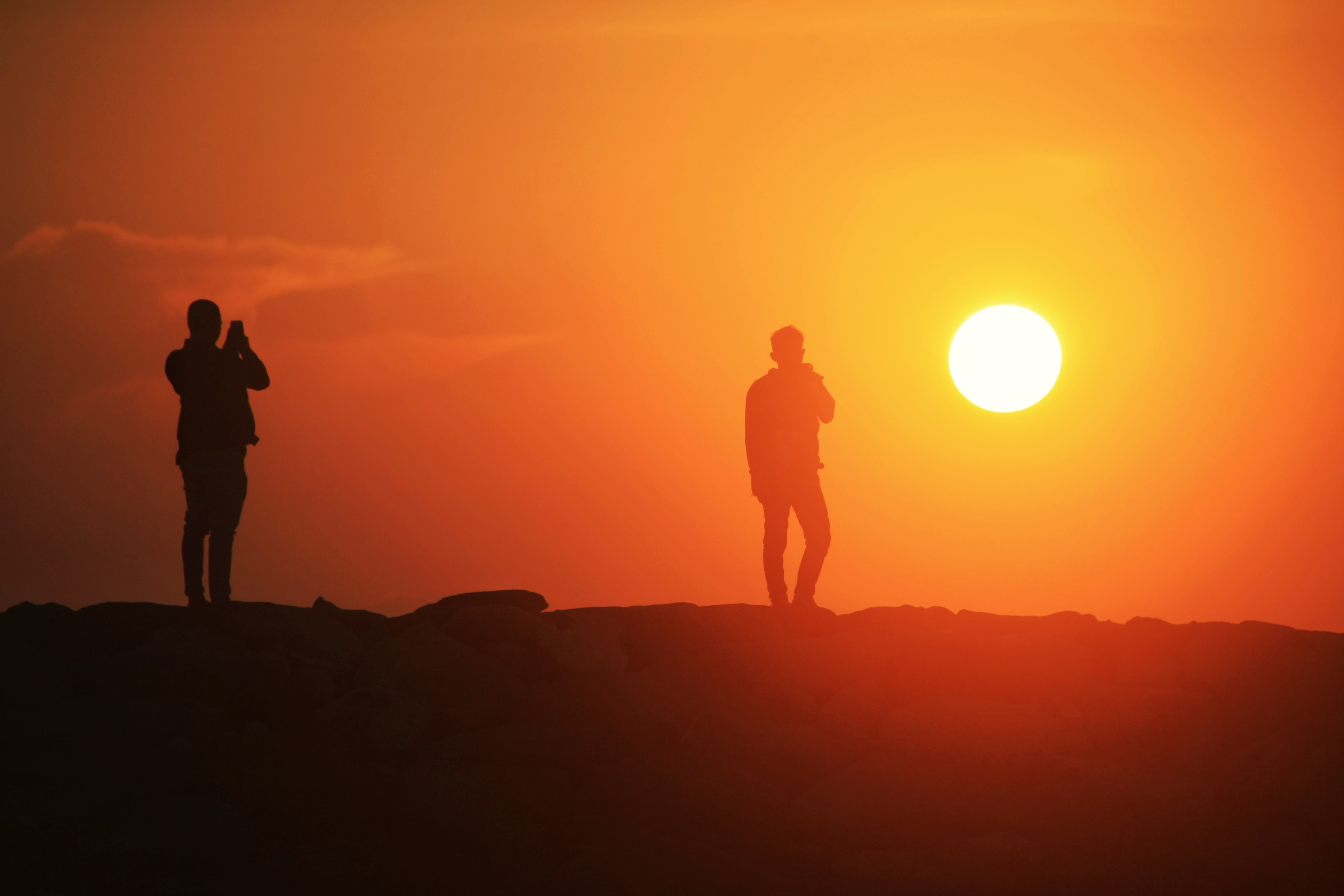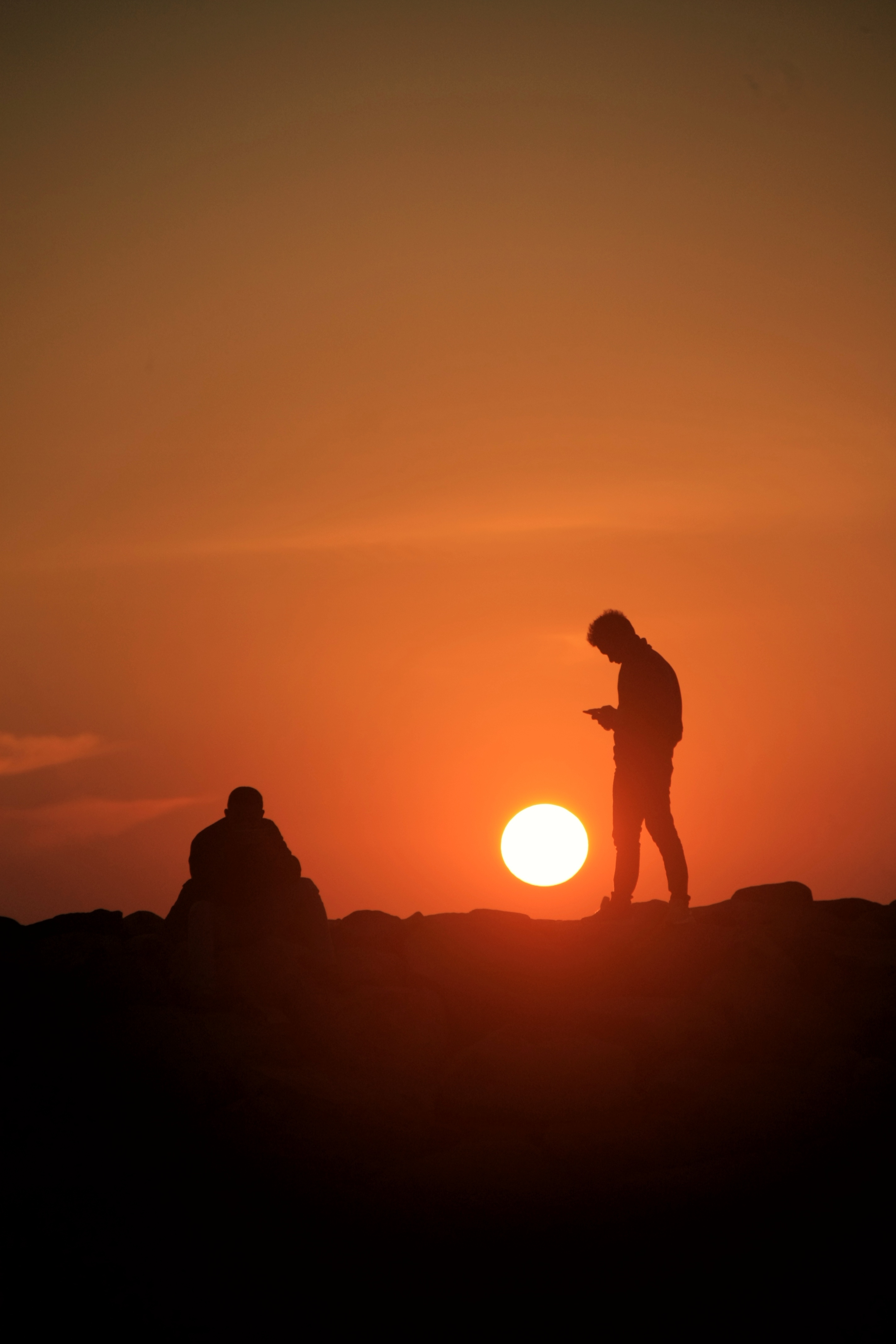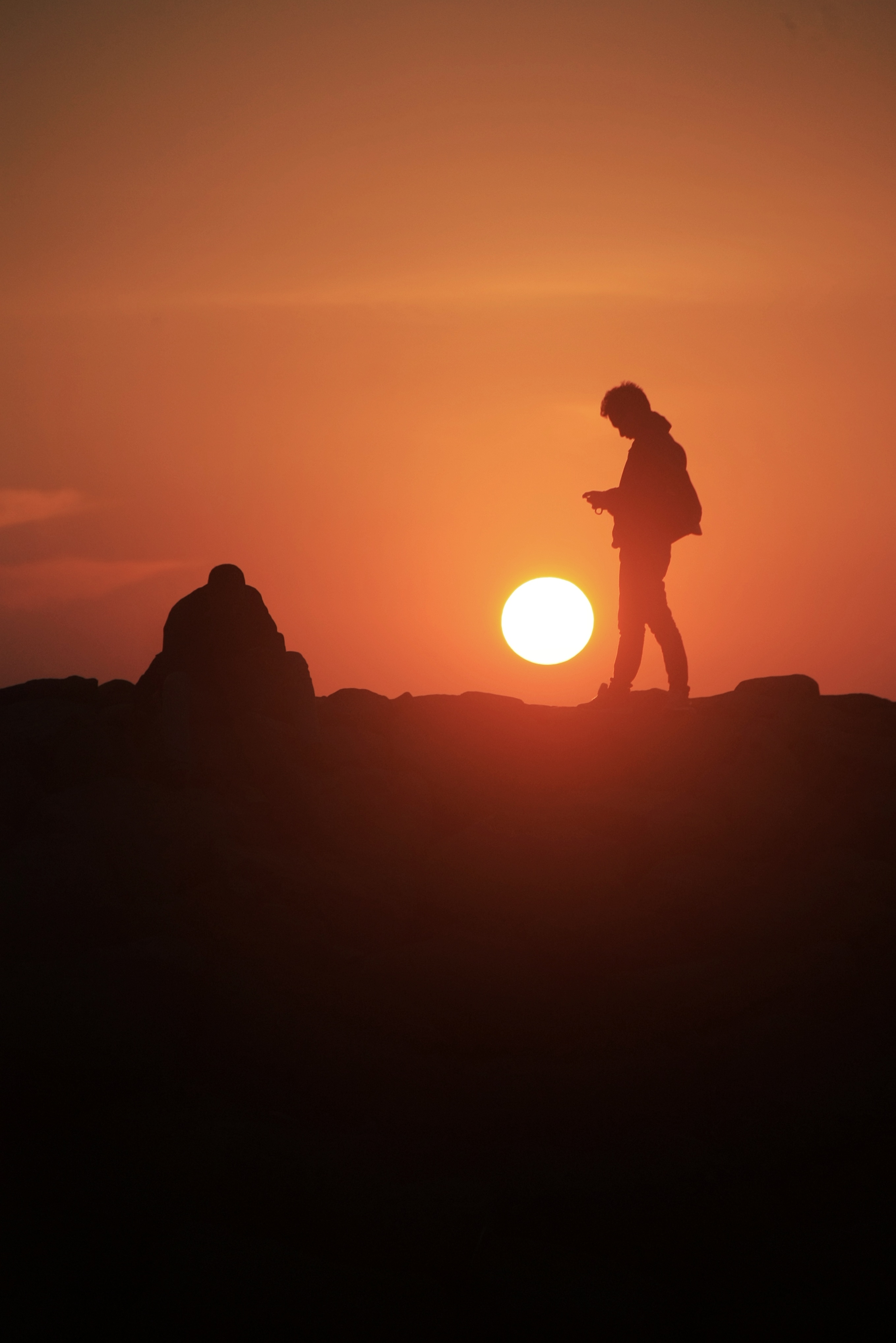 Beautiful view at sunset at the west end of Aceh with a round orange sun.