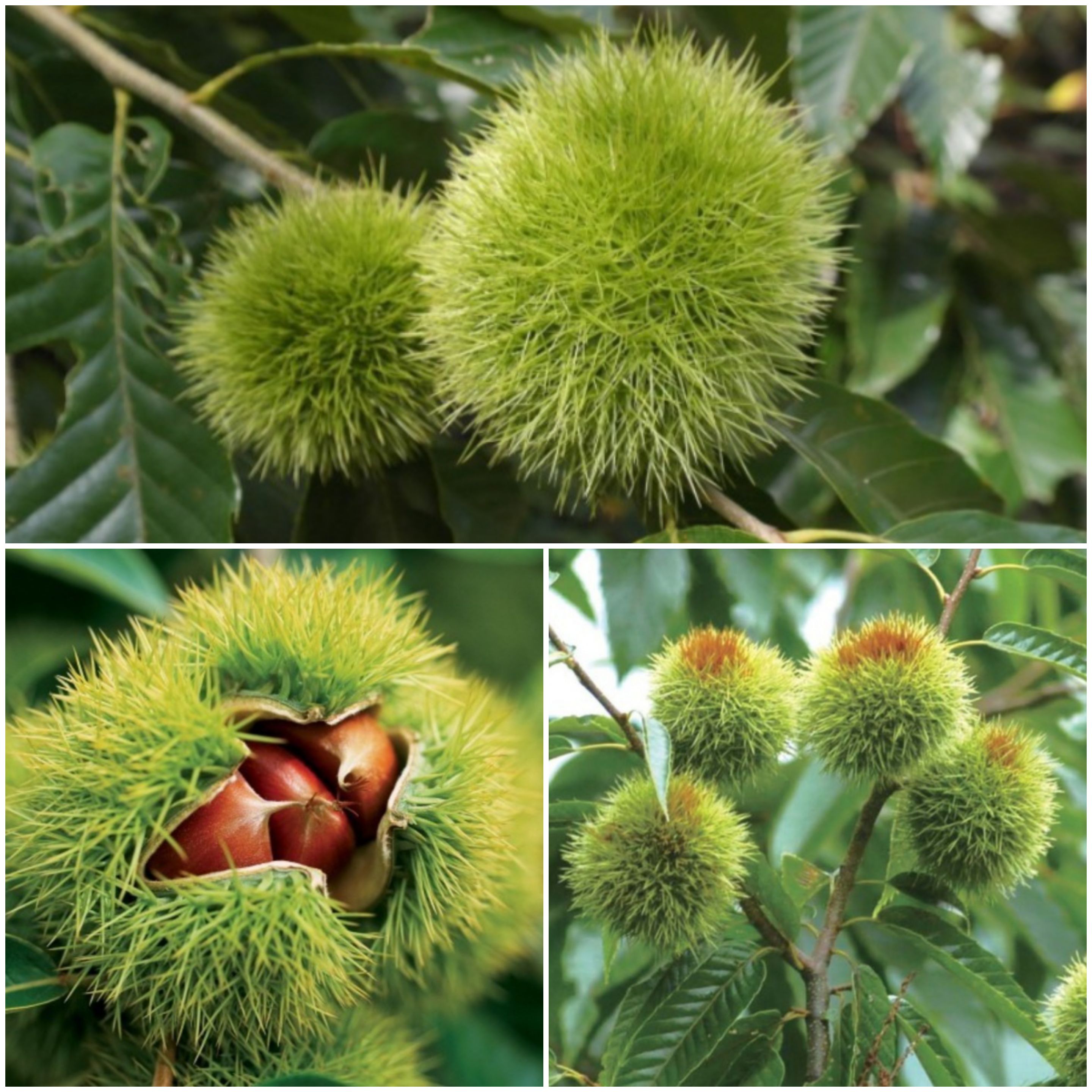 밤나무는 암수한그루로 6~8월에 꽃이 달리는데 수꽃은 새가지 끝의 잎겨드랑이에서 꼬리모양의 화서에 많이 달리고 암꽃은 그 밑부분에서 2~3개식 한군데 모여 난형으로 작게 달립니다.