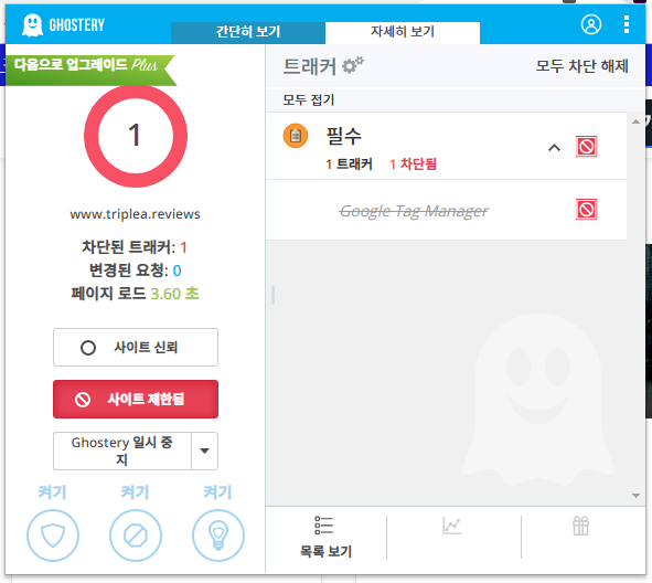 웹에 대해 전혀 모르는 나는 몇 주 동안 다양한 검색을 했고 오늘은 트래커라는 단어를 처음으로 알게 됐다. 트래커를 검색하다가 확장프로그램 하나를 찾았고 설치했다. 설치 후 트플에 들어가니 구글 트래커를 사용하고 있음을 알게 됐다. 위 사진은 트플에서 사용중인 트래커를 차단했다는 캡쳐다. 혹시나 하고 니트러스를 무작위로 들어가니 모든 니트러스들이 구글 태그 매니저를 사용중이었다. 아마도 니트러스가 기본적으로 이 기능을 제공하는 것 같다.