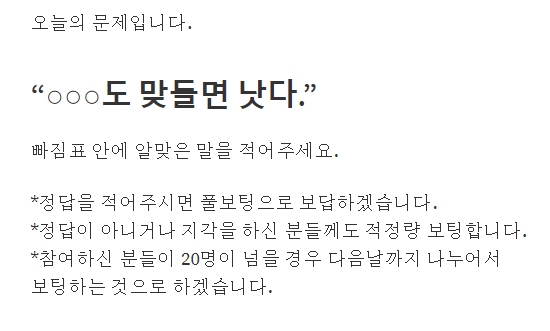 "jjy님이 진행하는 우리말 우리글에 아래와 같은 문제가 나왔습니다.