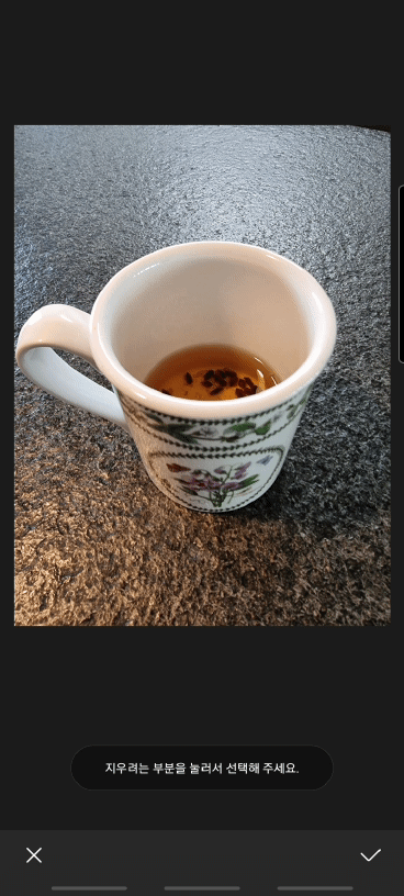 [아래사진]에서 저는 컵이 공중 부양 느낌이 나도록 바닥을 지우고 컵만 남겨 놓고 싶습니다. 아주 쉽게 가능할 거라 생각했는데 의외로 다른 결과가 나오더군요.