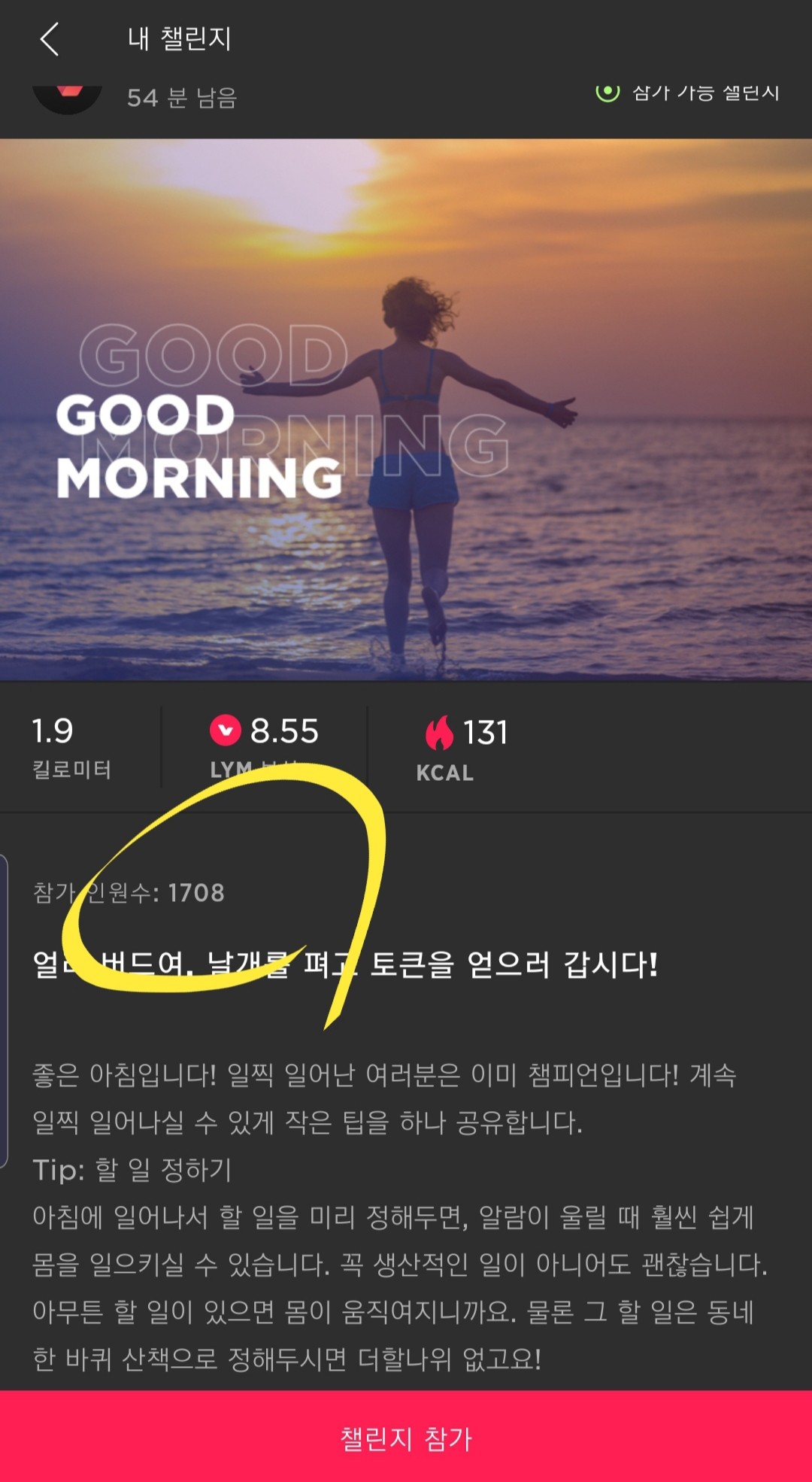 굿모닝 챌릴지에 1천 700여명이 참여했네요..