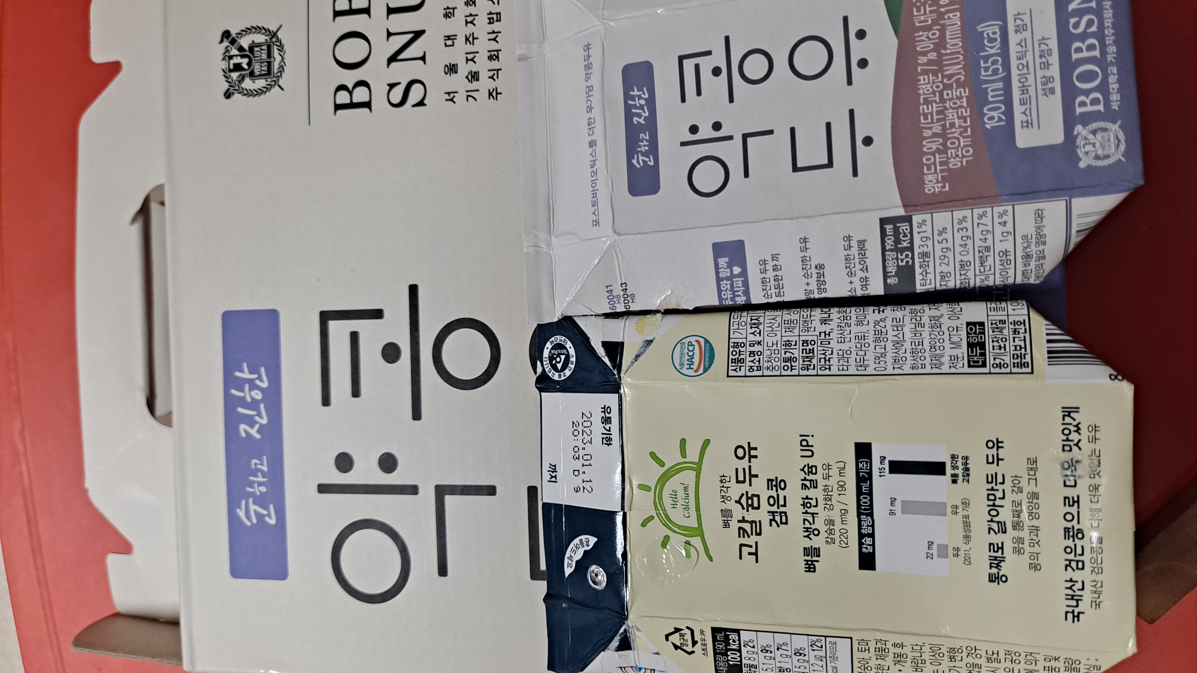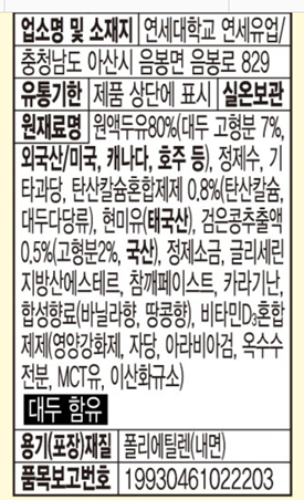 우유(카제인과 유당 등으로 염증과 알레르기 문제를 일으키는)를 먹은 국내 영아와 유아들이 알레르기와 자가면역반응을 보여서 그 대안으로 두유를 개발한 것인데, 미국산 GMO 콩이 아니라 국내산 콩을 쓴 두유 원액 90%에 설탕을 안 썼으니 그나마 위안이네요, 합성 향료 등 첨가물과 과당 등은 우려스럽습니다만.