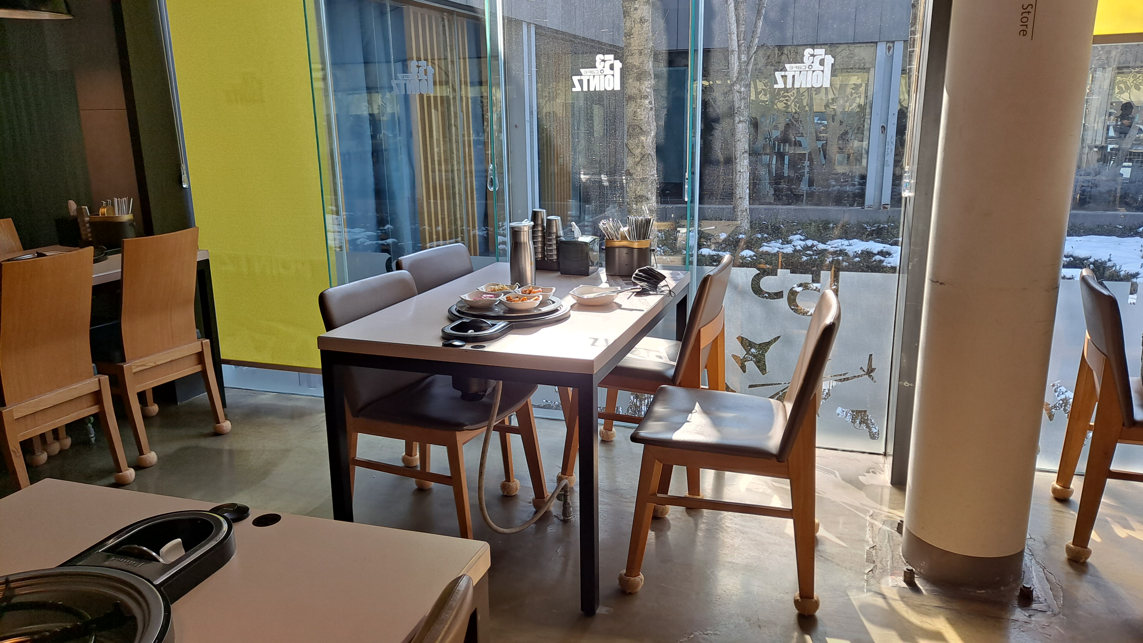 창가 햇살 좋은 자리에서 차도한잔, ㅎㅎ 캡슐 커피를 2000냥에 할인해 줍니다.