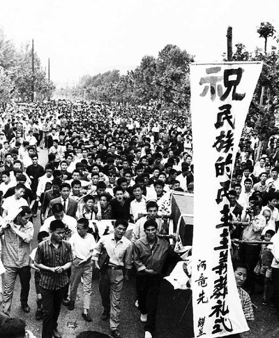 민정 이양 후 박정희의 정체가 본격적으로 드러나기 시작하고 졸속적인 한일회담이 추진되던 1964년 5월 20일 서울에서는 대규모 시위가 터졌다. 시인 김지하의 이름을 세상에 알린 ‘민족적 민주주의 장례식’ 이었다. “시체여 너는 오래 전에 죽었다. 죽어서 썩어가고 있었다. 넋없는 시체여. 반민족적 비민주적 민족적 민주주의여. 썩고 있는 네 주검의 악취는 사쿠라의 향기가 되어 마침내는 우리들 학원의 잔잔한 후각이 가꾸고 사랑하는 늘푸른 수풀 속에 너와 일본의 2대 잡종 이른바 사쿠라를 심어 놓는다......”로 시작하는 김지하의 조시는 당시 중앙정보부장 김형욱의 회고에 의하면 “숨이 막혀 더 이상 읽을 수 없었다.”고 할 지경으로 신랄하고 날카로웠다.
