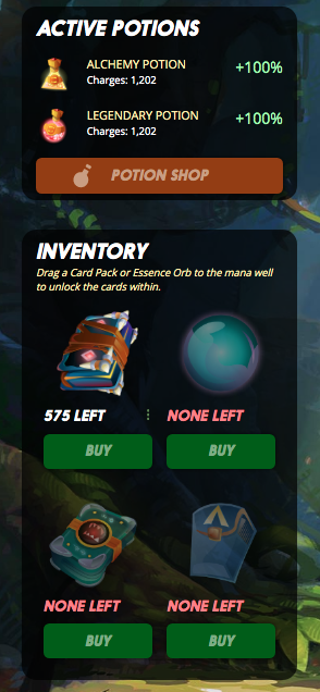 레전더리 카드가 나올 확률을 두배로 높여준다는 포션도 받았네요.