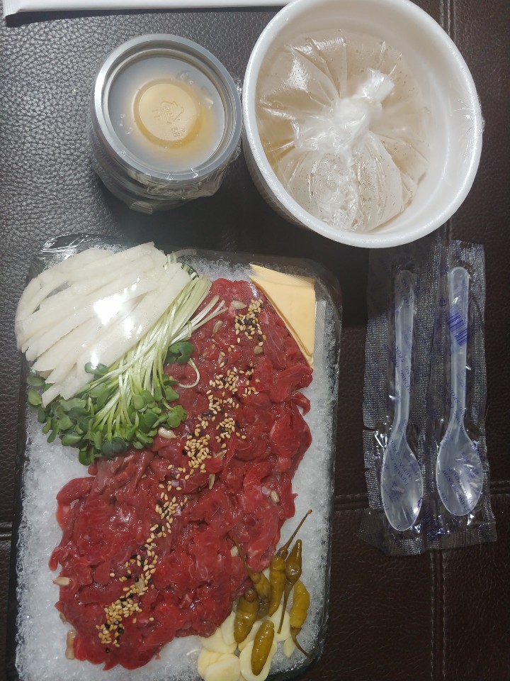 배달로 먹는 육회.suddenly12 (71)in #zzan • 6 years ago 올해 들어서 부쩍 좋아진 육회를 처음으로 배달 주문으로 먹어봤어요. 고기 빛깔도 좋고 계란 노른자 및 뭇국 등도 꼼꼼히 챙겨주셨네요. 광장 시장보다는 못하지만 맛도 좋고 가격도 괜찮아서 가끔 시켜 먹어야겠어요. ^^ #dblog #photo #kr