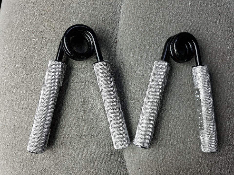 악력기의 명품 COC(Captain of Crush)사의 것은 너무 비싸 캐나다 Heavy Sports 사의 Heavy Grips200(200Lbs= 90.7kg), 250(250Lbs= 113.4kg), 300(300Lbs= 136kg) 3개를 구입했으나 아직 300Lbs 짜리는 개봉도 못하고 있다. 거의 매일 연습해도 250Lbs 짜리도 아직 완전히 잡지 못하기 때문이다. 운동하는 친구들이 내 차 안에 있는 조금 약한 200Lbs 짜리 악력기를 잡고도 쩔쩔매는 걸 보면 3년 정도 지나며 악력이 많이 강해졌다고 느껴진다.