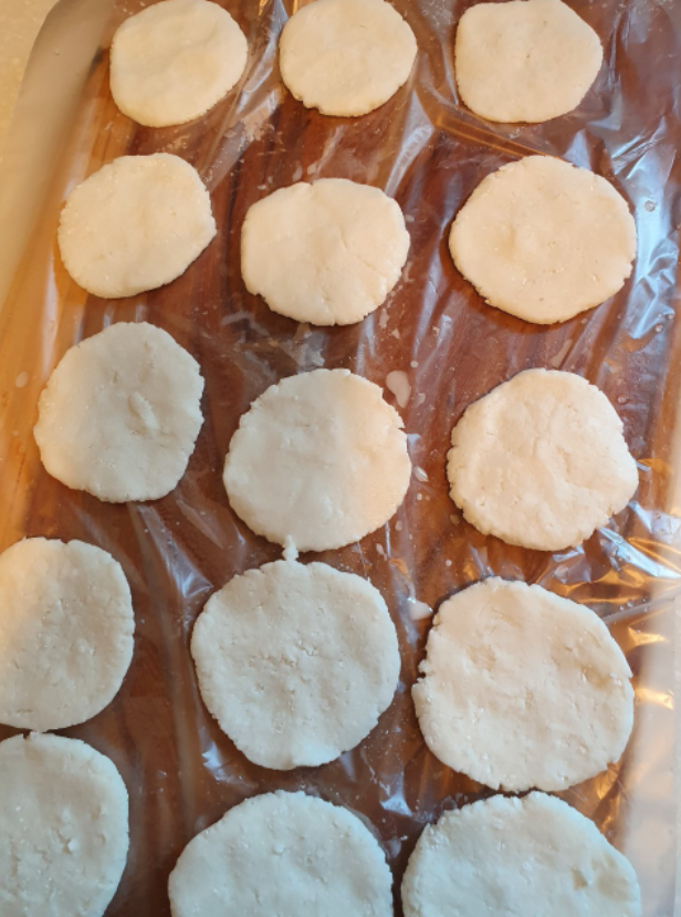 반죽은 맵쌀 찰쌀가루 반반 익반죽후 빚어 둡니다