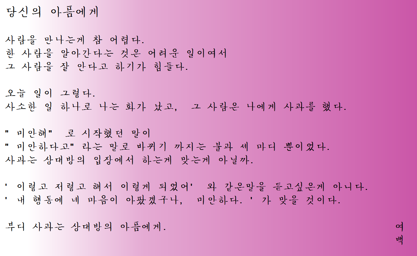 오늘의 글귀 - 당신의 아픔에게