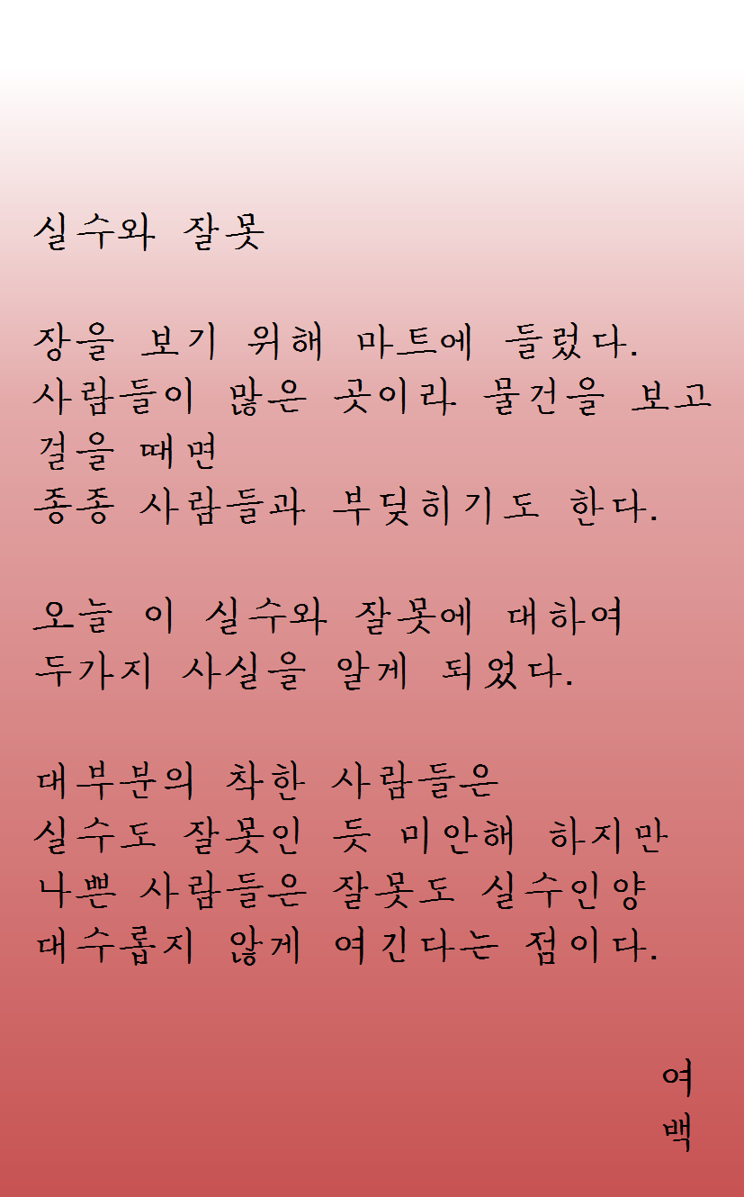 오늘의 자작 시 - 실수와 잘못