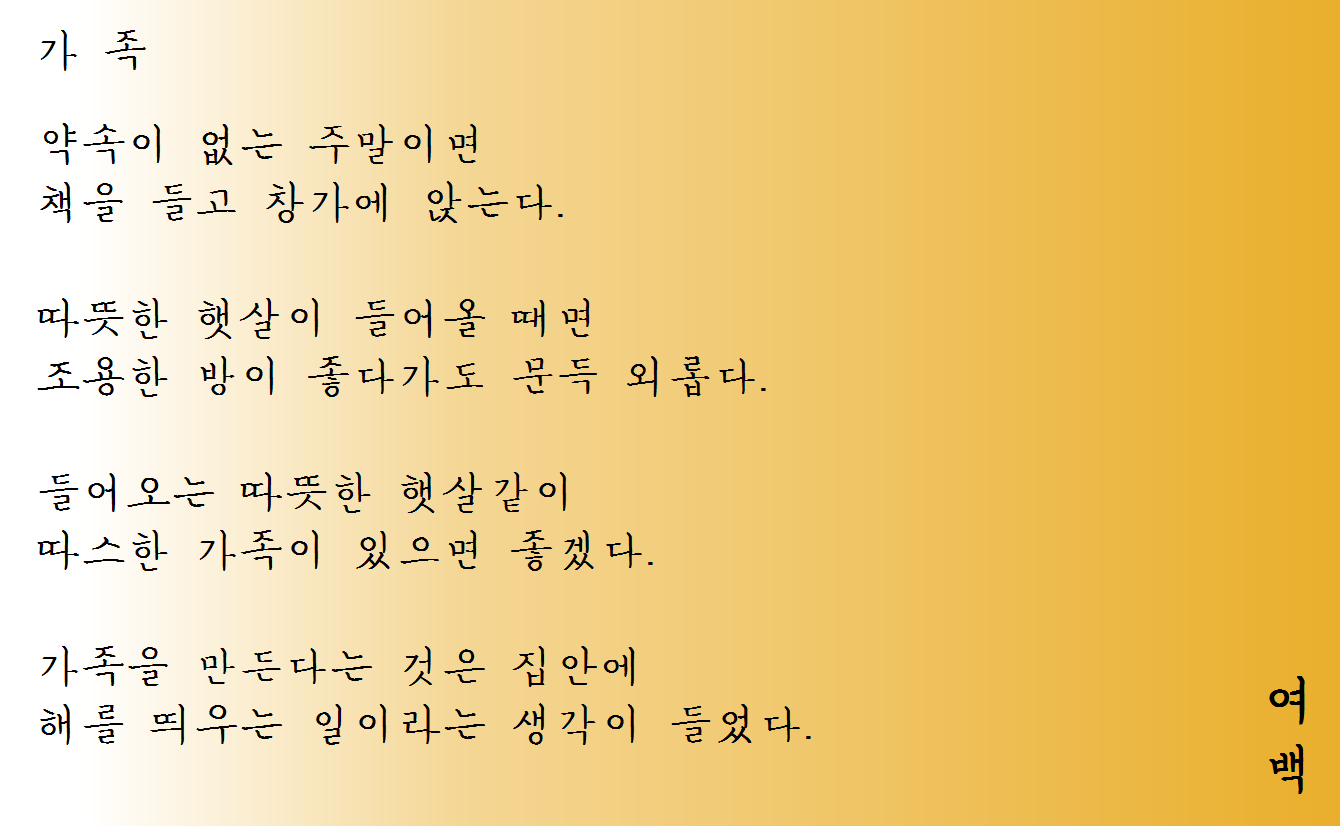 가족을 만드는 것이 해를 띄우는 것이란 표현에서 굉장히 따뜻함을 느낄 수 있었습니다. 멋진 글 감사드립니다!