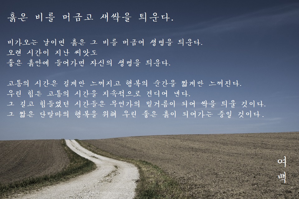 오늘의 글귀 - 흙은 비를 머금고 새싹을 틔운다.