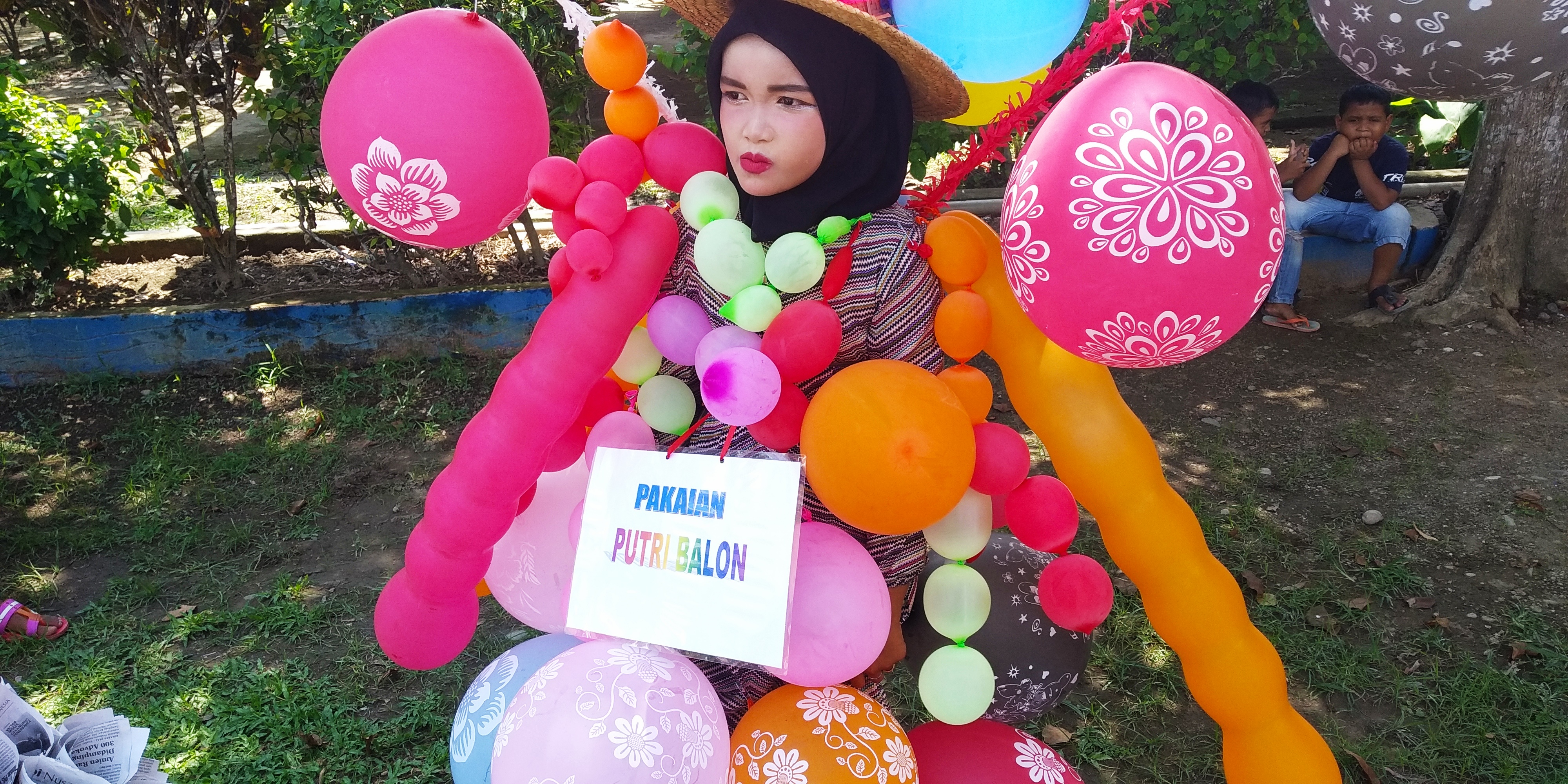 Hai Sahabat SteemZZANG, kali ini saya menampilkan salah satu kostum peserta karnaval dalam rangka menyambut Hari Ulang Tahun Kemerdekaan Republik Indonesia tahun ini. Kostum ini di namakan putri balon. Dinamai putri balon karena seluruh tubuh dari peserta karnaval dihiasi dengan berbagai macam jenis balon sehingga tampilan seperti dapat mengundang perhatian banyak orang.