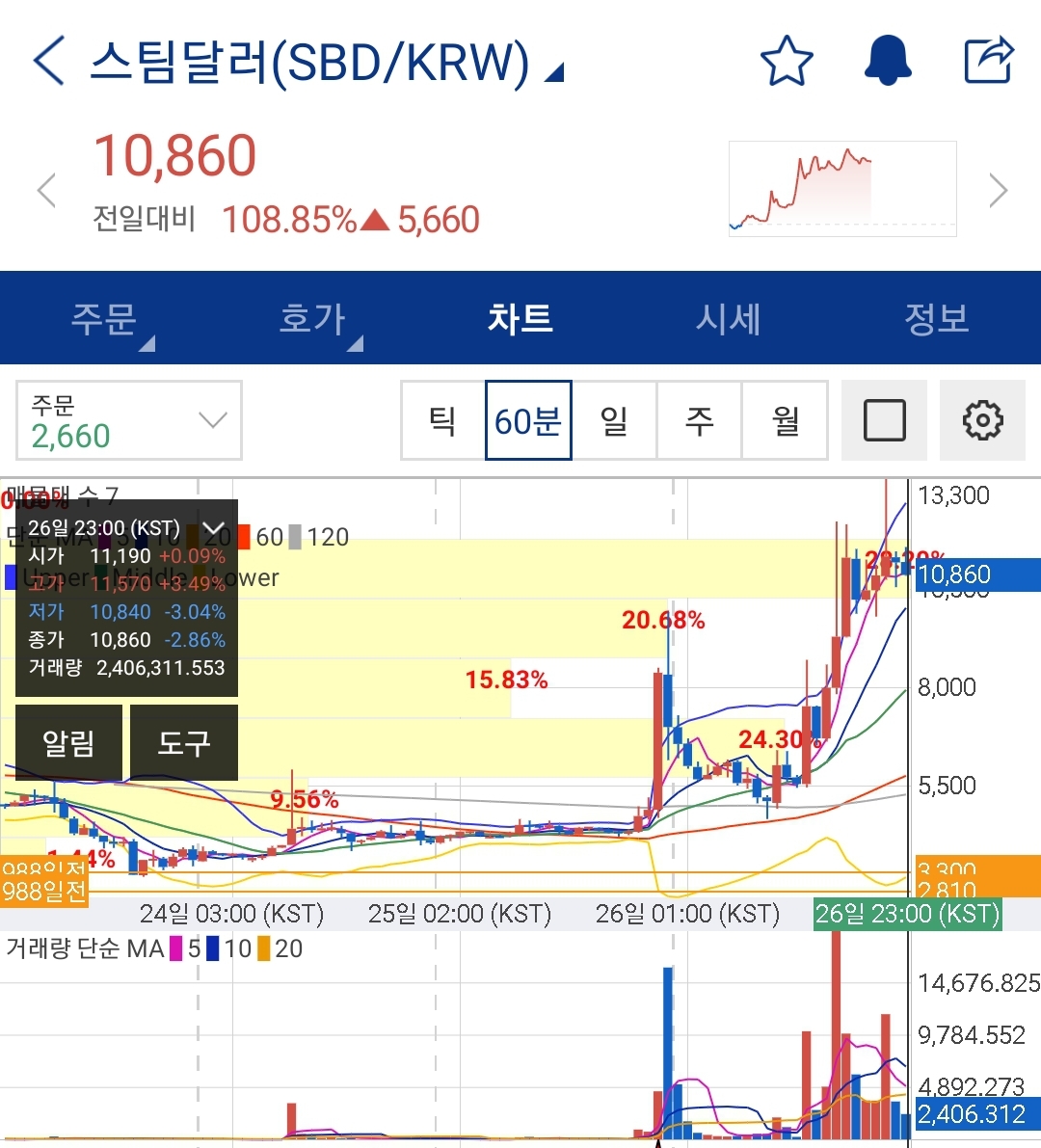 [제곧내+] #44 비트코인 조정? 훗, 오늘은 스팀달러가 주인공! (스팀달러 장중 13,300원 터치!!)y-o-u-t-h-m-e (71)in #zzan • 5 years ago 제곧내. 11,000원에서 3,300원까지 곤두박질 쳤던 스팀달러, 며칠만에 엄청난 반등을 보여주었습니다! 60분봉을 보고있으면 세력의 운전실력이 얼마나 현란한지 확인할 수 있습니다. ^^; 현재 코인 시황입니다. 출장을 와있는 관계로 포스팅의 길이가 짧은 점 양해 부탁드립니다.. ^^; #kr #jcar #youthme