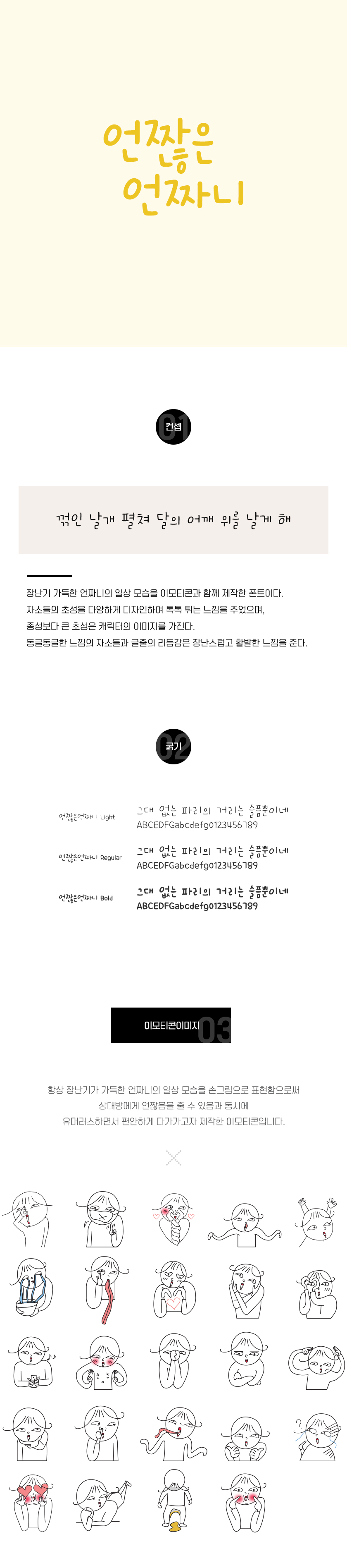 [디자인210] 언짢은언짜니ziq (71)in #zzan • 5 years ago 오늘 소개할 서체는 디자인 210의 '언짢은언짜니'입니다. 상업용 무료폰트는 아니지만 개인의 비상업적 용도에 한해 사용이 가능합니다. 개인적으로 사용해 보고 싶은분은 아래 링크에서 다운받으세요. 바로가기 #kr #liv #hobby #mini #aaa