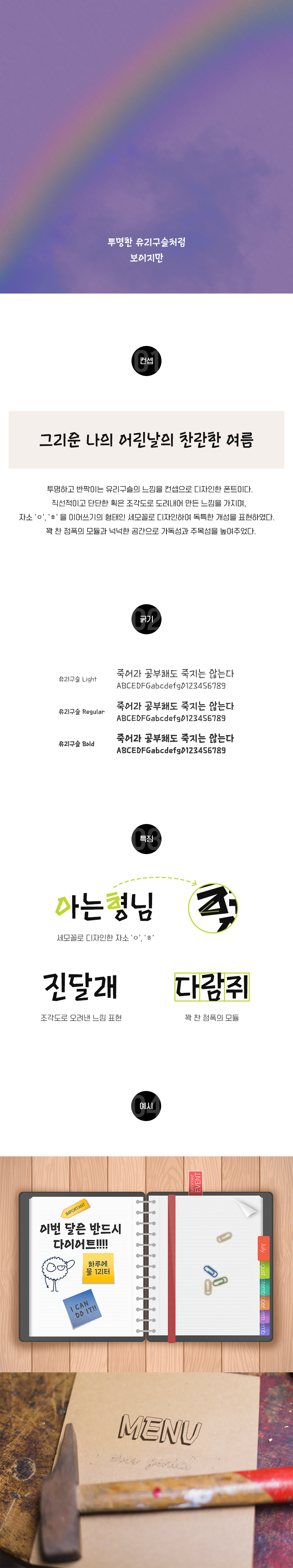 오늘 소개할 서체는 디자인 210의 '유리구슬'입니다. 상업용 무료폰트는 아니지만 개인의 비상업적 용도에 한해 사용이 가능합니다.
