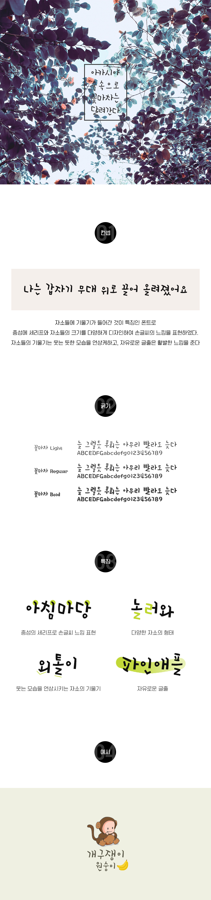 [디자인210] 꽃마차ziq (71)in #zzan • 5 years ago 오늘 소개할 서체는 디자인 210의 '꽃마차'입니다. 상업용 무료폰트는 아니지만 개인의 비상업적 용도에 한해 사용이 가능합니다. 개인적으로 사용해 보고 싶은분은 아래 링크에서 다운받으세요. 바로가기 #kr #liv #hobby #mini #aaa