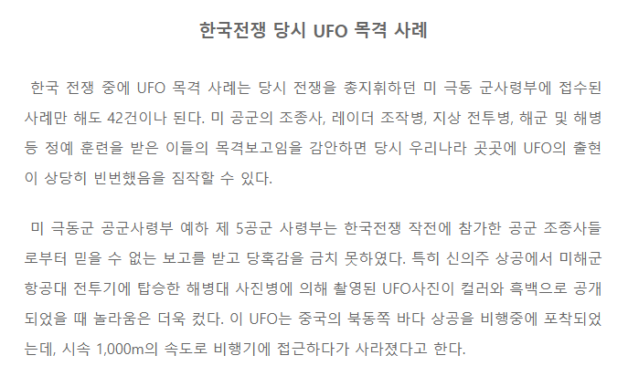 이 존스라는 사람이 한국전쟁에서 UFO 를 발견하였고, 그로부터 UFO 신봉자가 되었다는 것이다.