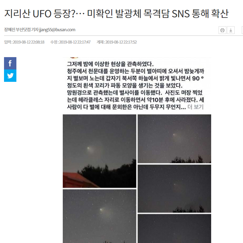 생각보다 우리나라도 UFO 가 많이 발견되나 보다.